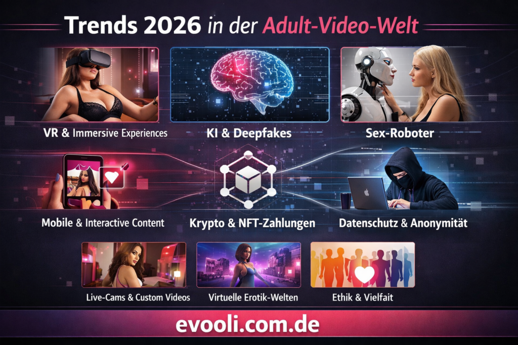 Evooli ist 2026 eine der führenden Plattformen für Adult-Inhalte in Deutschland. Die Kombination aus hoher Videoqualität, vielfältigen Kategorien, interaktiven Features und sicherem Streaming macht die Plattform einzigartig. Nutzer können aktuelle Trends entdecken, Inhalte individuell anpassen und ein modernes Entertainment-Erlebnis genießen.